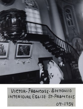 Victor Caron, Françoise et Antonio Lamonde en juillet 1954 dans l’église de Saint-François-de-la-Rivière-du-Sud